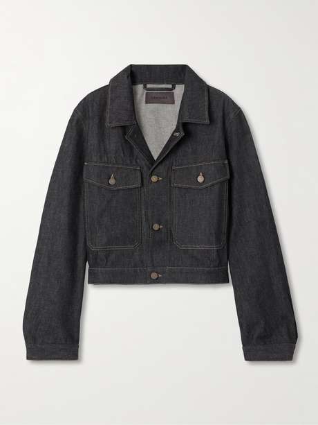 Lemaire's jacket is cut from certified organic denim in a deep indigo wash. Traced with contrast topstitching, it has a cropped hem and an oversized pocket on each side.