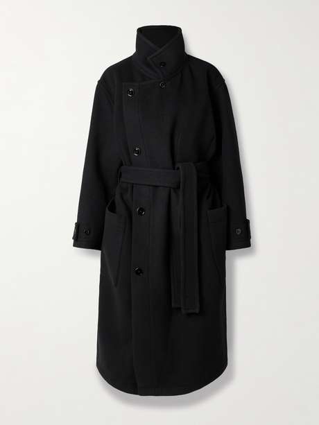 LEMAIRE's coat offers effortless sophistication with its relaxed shape and asymmetric placket. Made from soft wool, it features a wide collar and a tie belt that lets you cinch the waist for a tailored finish.