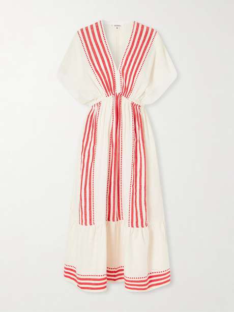 Founded by Liya Kebede, LemLem celebrates artisanal craft through handwoven textiles. The 'Leila' plunge dress in Eshe Red pairs a fluid silhouette with a bold neckline. An expressive yet effortless piece for sunlit days and warm evenings.