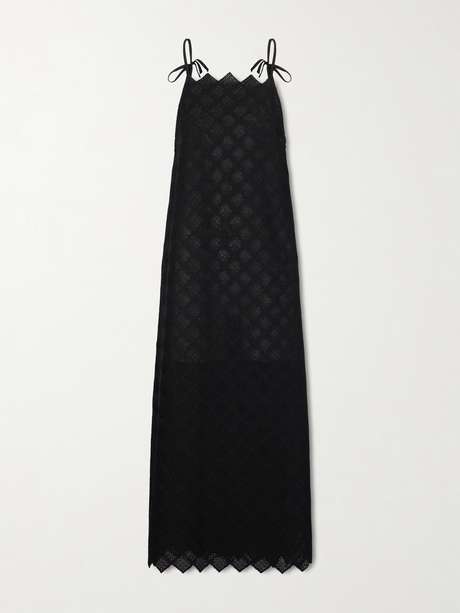 LIBEROWE's 'Jolie' maxi dress is cut from Italian semi-sheer lace. It has adjustable tie spaghetti straps for a flexible fit and features a scalloped neckline and hem; wear it with sandals and statement jewelry.