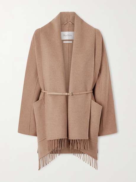 MAX MARA Belted fringed camel hair coat