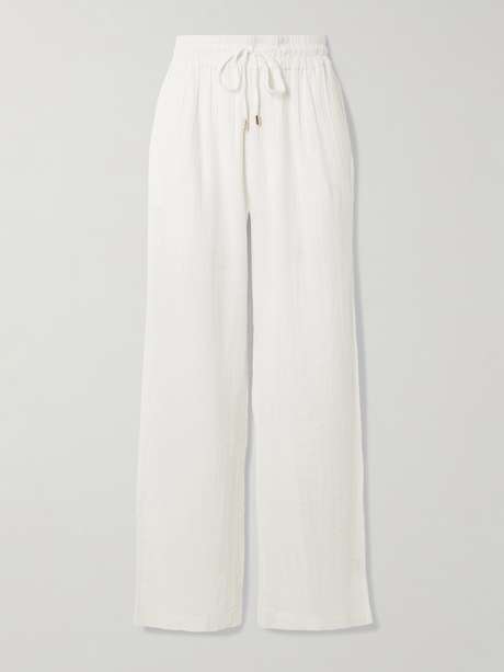 Melissa Odabash's 'Krissy' pants are the perfect slip-on-and-go style, bringing "relaxed elegance to your destination wardrobe". They're made from crinkled-cotton and have flowy straight legs. The drawstrings are detailed with gold-tone aglets.