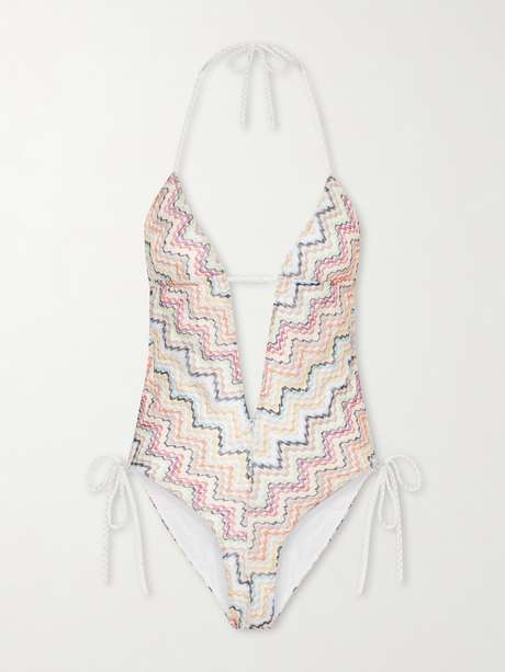 MISSONI Striped crochet-knit halterneck swimsuit