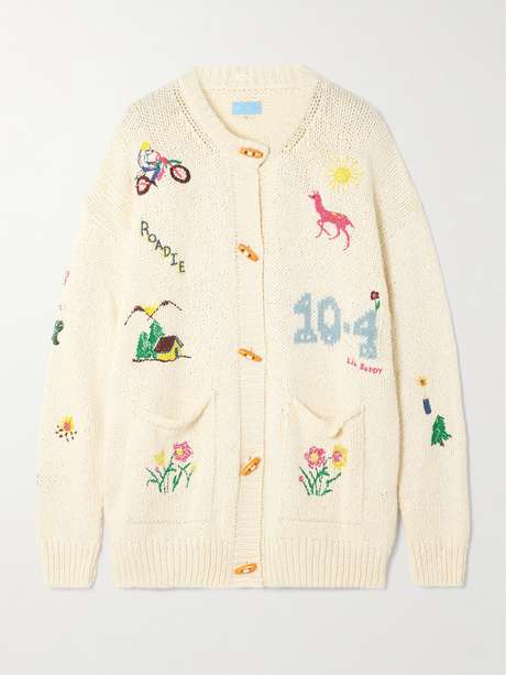 MOTHER's 'The Long Drop' cardigan is intarsia-knitted and embroidered with colorful motifs inspired by a trip to the countryside. It's knitted from cotton and alpaca-blend for a relaxed fit and has vintage-inspired toggle buttons.