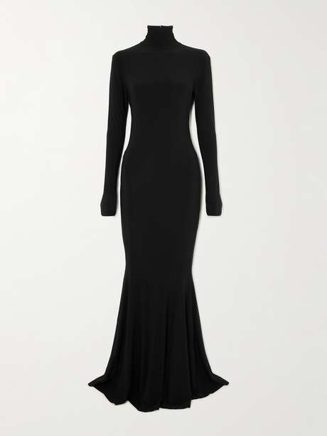 Norma Kamali's turtleneck gown is a sleek and simple choice for evening events. It's made from the label's signature body-sculpting stretch-jersey and languidly falls to a fishtail hem. Wear it to your next party with little more than a pair of diamond earrings and heels.