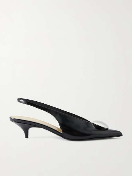 Proenza Schouler's slingback pumps have a sleek, modern feel. Made from smooth leather, they have exaggerated pointed toes embellished with a polished silver-tone dome and rest on slim heels.