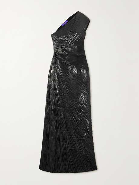 RALPH LAUREN COLLECTION Hadlea one-shoulder pleated metallic silk-plissé gown