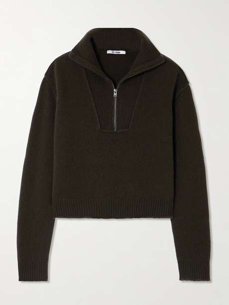 RE/DONE Frayed wool and cashmere-blend half-zip sweater