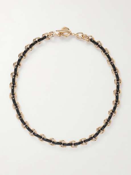 The chunky links that make up Roxanne Assoulin's necklace give it plenty of presence and a contemporary feel. It's cast from contrasts of gold-tone metal and striking black enamel and designed to sit on the collarbones.