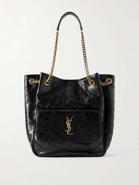 SAINT LAURENT's 'Niki' tote recalls archival designs, so it already feels like an heirloom piece. Made in Italy from crinkled glossed-leather, it has signature chevron stitching and a gold-tone chain that matches the 'Cassandre' plaque. Keep smaller essentials to hand in the front pocket, as well as a book and cosmetics case in the spacious main compartment.