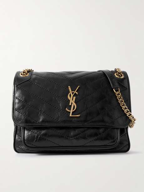SAINT LAURENT Niki medium crinkled glossed-leather shoulder bag