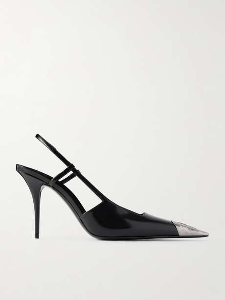 You may have black pumps, but none feel as cool and glamorous as SAINT LAURENT's 'Jeanne' pair. Made from glossed-leather, they have elongated square toes covered with hammered silver-tone metal - at the center sits the signature 'YSL' plaque. The 90mm heels offer plenty of lift, while the elasticated slingback straps keep them secure and comfortable.