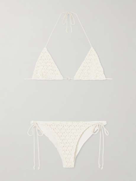 SARA CRISTINA Pearl crocheted cotton triangle bikini
