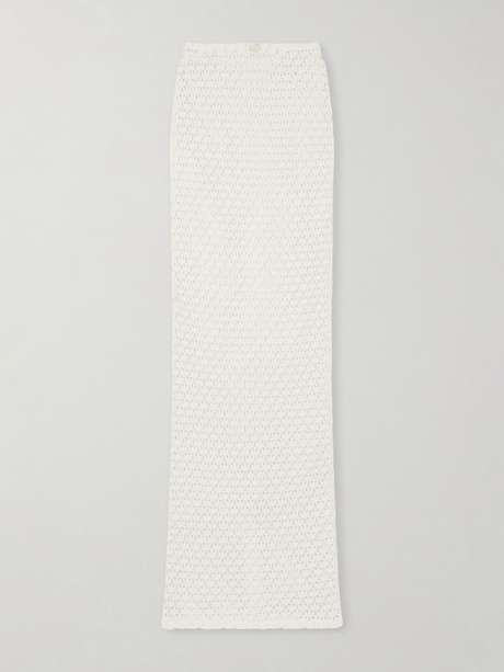 Sara Cristina’s ‘Arena’ coverup captures the ease of days by the shore. In a creamy hue, it's crocheted from cotton to a body-skimming silhouette and finished with a Baroque pearl at the waist.
