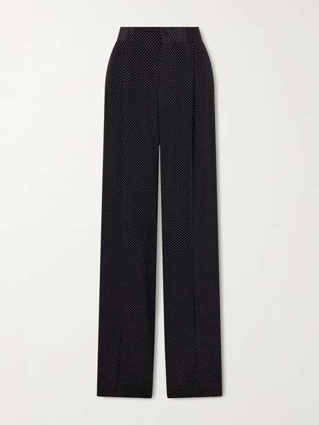 SASUPHI Pleated polka-dot silk-satin wide-leg pants