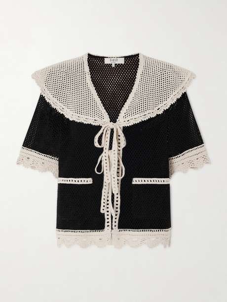 Sea infuses every garment with its signature blend of charm and vintage flair. Crocheted from cotton in a breezy, open construction, this scalloped 'Kendall' blouse is framed with a wide collar and has a tie-detailed front. Underpin yours with a tonal camisole for coverage.