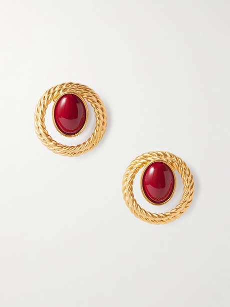 Sonia Petroff’s '80s-inspired 'Nest' earrings will make every outfit look more interesting. Designed with clip fastenings, they're crafted from gold-plated metal and inlaid with glossy red enamel.