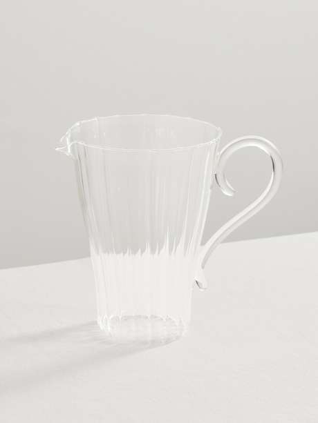 Sophie Lou Jacobsen 'Le Pichet' jug is defined by sculptural curves inspired by fanned out flowers. It's shaped from clear glass and designed to bring beauty to the simple act of everyday rituals. Fill yours with water, wine, or iced tea.