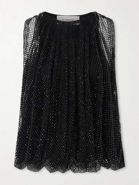 SportMax's top fuses glamour and textural detail. Underpinned with a tonal tank, it's made from mesh that's scattered with shimmering crystals and has a gathered bubble hem. Wear yours with wide-leg pants and heels.