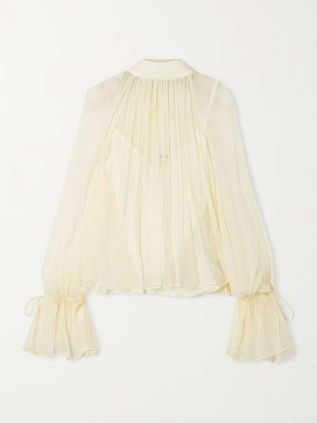 STAUD's 'Roux' blouse is made from chiffon that's gathered along the mock neckline to create a beautiful drape through the loose silhouette. It's complete with ties at the cuffs for definition and comes with a tonal camisole to ensure coverage.