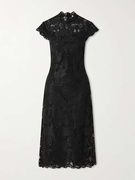 STAUD's 'Rosaline' dress is made from guipure lace and partially lined to give it a sheer neckline. It's framed by fluttery scalloped sleeves and skims your frame all the way to the midi hem. Style yours with all-black accessories.