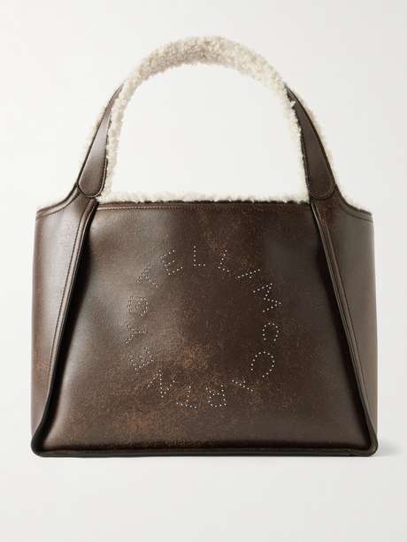STELLA MCCARTNEY Embroidered fleece-trimmed vegetarian tote