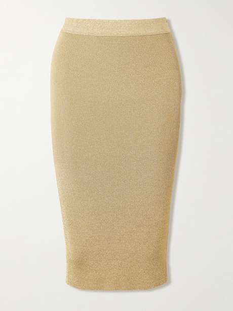 STELLA MCCARTNEY Metallic ribbed-knit midi skirt