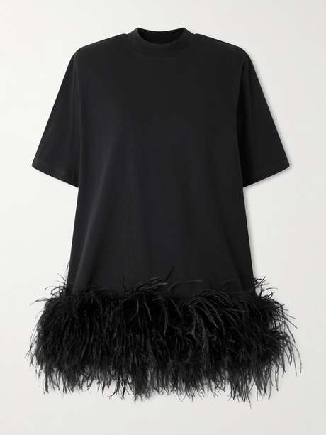 The Attico's bold designs have made it a favorite of cool girls. This mini dress has an oversized T-shirt-style top made from soft cotton-jersey and a fluffy feather-trimmed hem. Wear yours with a pair of the brand's mules and sheer tights.