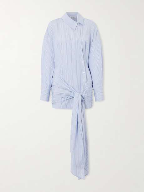 THE ATTICO Knotted striped cotton-poplin mini dress