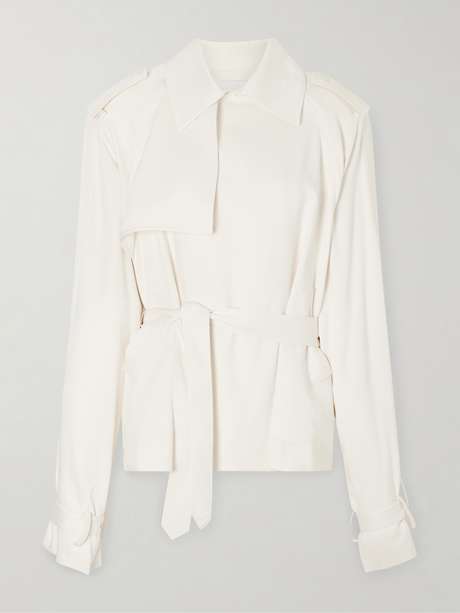 THE FRANKIE SHOP's 'Eva' jacket reinterprets trench codes through a fluid folds. It's cut from gabardine for a comfortable, relaxed fit. Style it with a silk scarf tied around your neck.