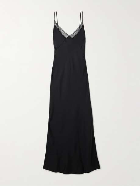 The Row 'Barina' midi dress draws on the allure of chic lingerie slips. It's made from silk-twill that falls effortlessly over your frame and is trimmed with delicate lace at the V-neckline. Wear yours with point-toe pumps.