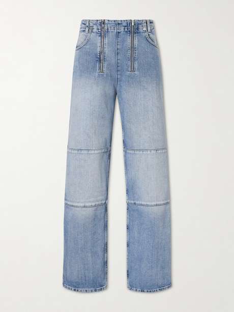 Tibi approaches denim with a focus on proportion and ease. The “Fischer” jeans are cut in a mid-rise, wide-leg silhouette that falls in a clean, elongated line. Their pared-back finish makes them a versatile foundation for tailored or relaxed looks.