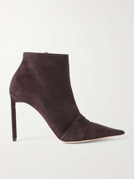 TOM FORD's ankle boots cut a flawless, polished silhouette. Made from suede, they're defined by a tall stiletto and ultra sharp point toe, which together have an elongating effect.