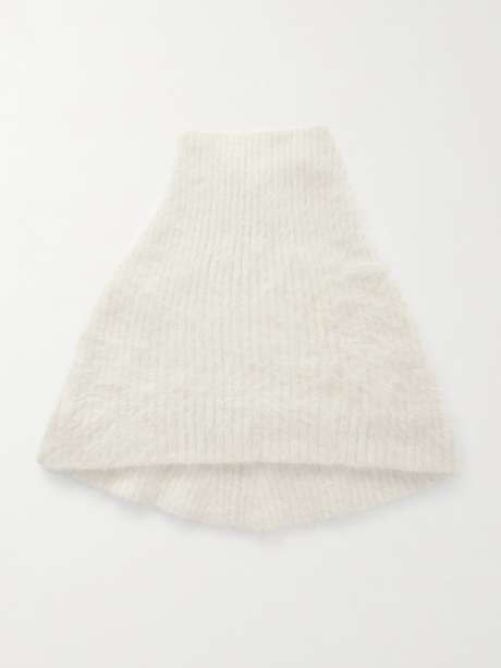TOTEME's neck warmer sweeps elegantly over the shoulders – the shape feels equally polished and cozy. Knitted from alpaca-blend, it has a fluffy, springy texture.