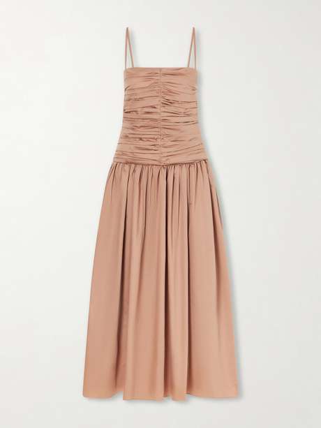 TOVE takes its name from the Danish word for strength and beauty, a sentiment reflected in the 'Amina' dress. Made from organic cotton, it has a ruched bodice set on spaghetti straps and a softly pleated skirt falling to midi length.