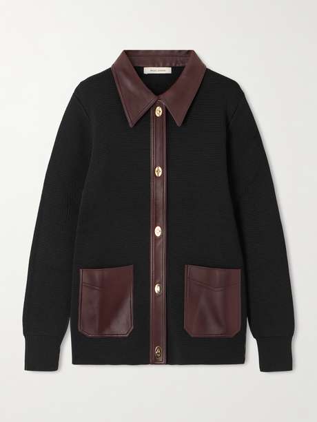 Wales Bonner’s knitted cardigan blends classic preppiness with refined craftsmanship. Shirt-inspired in structure, it’s framed with rich leather trims including patch pockets and has gold-tone buttons.