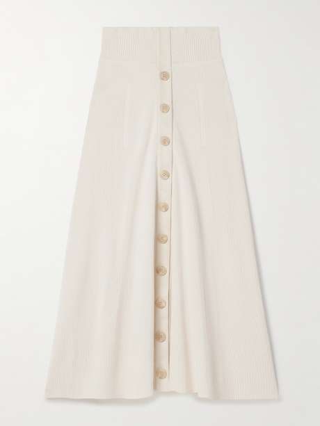 ZIMMERMANN Cotton-trimmed ribbed-knit midi skirt