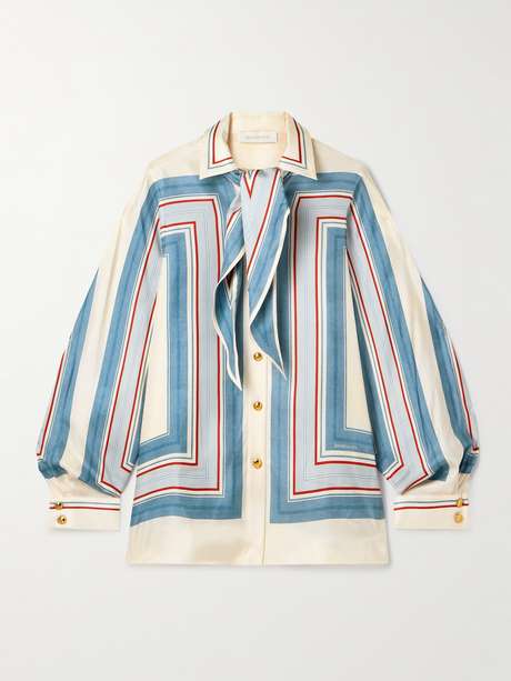 ZIMMERMANN Tie-neck striped silk-twill shirt