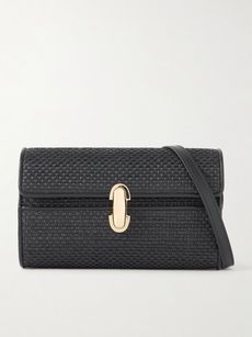 SAVETTESymmetry leather-trimmed woven raffia shoulder bag