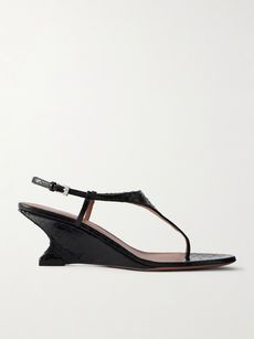 The key to dressing for the office in the midst of a heatwave is to choose pieces that’ll keep you cool but still look polished in a professional setting. From our NET-A-PORTER edit, Liberowe’s crocheted co-ord nails the brief – the boxy ‘Harper’ shirt and sleek ‘Remi’ skirt are both intricately detailed with scalloped edges and look as chic worn apart with other separates as they do together. Style yours with Alaïa’s ‘Tong’ wedge sandals in glossy patent-leather and Khaite’s elongated ‘Donna’ clutch.