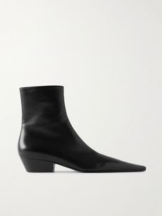 A brand also well-versed in creating hardworking and infinitely chic wardrobe staples is The Row. Its ‘Aurelius’ jacket is an elevated take on workwear styles, made from a sumptuous cotton and cashmere-blend and finished with utilitarian pockets and buckled tabs to create a more defined silhouette. Throw yours over a red knit and straight-leg jeans, adding Saint Laurent’s ‘Jill’ ankle boots (their sleek, pointed-toe shape adds requisite polish to more casual pieces) and Gucci’s ‘Softbit’ bag in slouchy tan suede.