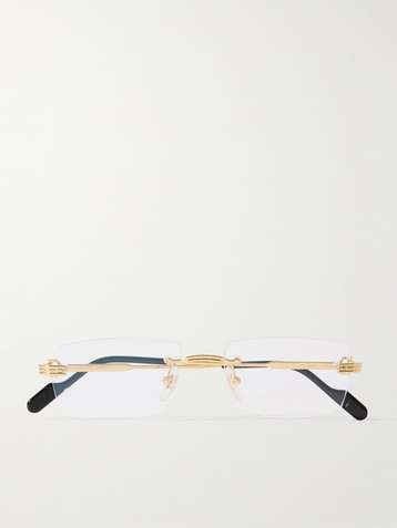 Première De Cartier rimless rectangle-frame gold-tone optical glasses