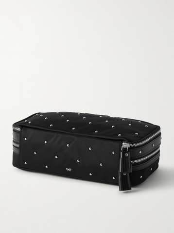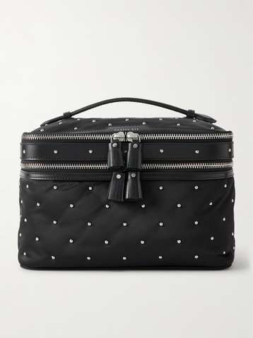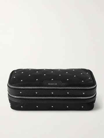Important Things studded leather-trimmed recycled satin cosmetics case