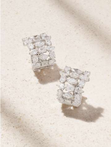 Heartbeats 18-karat white gold, diamond and enamel earrings