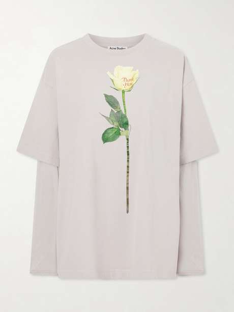 ACNE STUDIOS Distressed mesh-trimmed printed cotton-jersey T-shirt