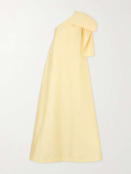 Founded in Antwerp, BERNADETTE channels modern femininity through expressive silhouettes. The 'Winnette' dress is cut in a one-shoulder, floor-length silhouette, finished with a sculptural bow at the back; its soft yellow hue and fluid line create a refined statement.
