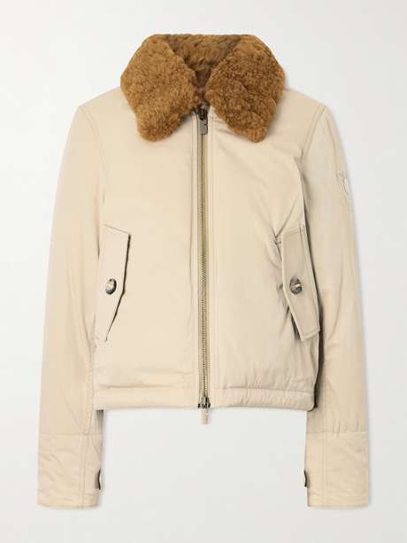Burberry's 'Gabardine Capsule' celebrates 170 years since its founding and Thomas Burberry's invention of the fabric. Crafted from cotton-blend gabardine, this jacket is padded with down for insulation and finished with a thick shearling collar.