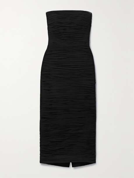 Carolina Herrera's Spring '24 collection is inspired by the elegant simplicity of the '90s - Carolyn Bessette-Kennedy is one of the brand's main muses. This midi dress is cut from silk-crepe that's ruched through the front and boned along the strapless neckline for support. Channel the era with kitten heels.