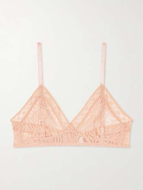 Eres’ ‘Vestige’ bra is made from delicate Leavers lace and features wireless triangle cups. Slim adjustable straps allow for a personalized, comfortable fit.