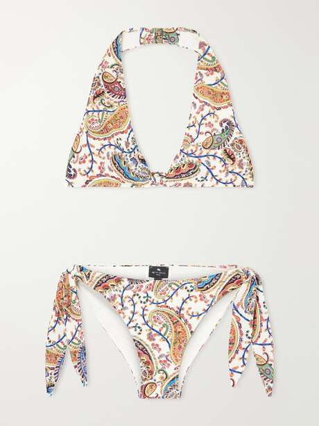 Etro has a gorgeous way with print and paisley is a brand signature. This halterneck bikini feels bohemian with its tie-detailed briefs and colorful motif.
